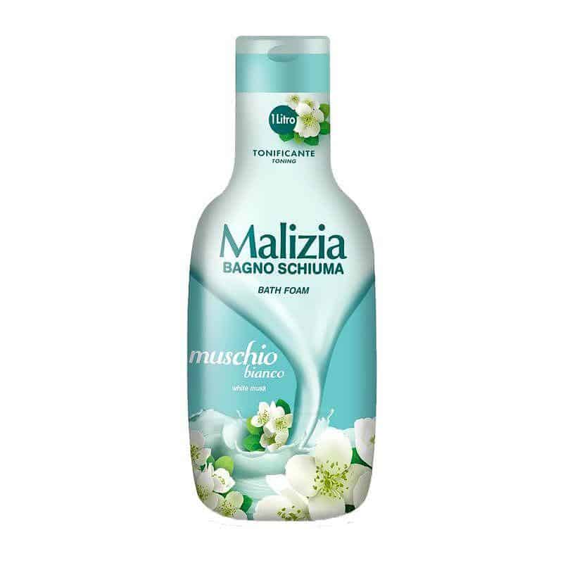 Новата формула на душ гел Muschio Bianco е обогатена с глицерин, който със своите свойства овлажнява кожата, оставяйки я съблазнителна и кадифена като сладка и вълнуваща ласка. От днес Malizia е още по-внимателен към околната среда. Средното количество пластмаса в бутилката е намалено с 20% (преминаване от PE в рециклируем PET), поддържайки гаранцията за качество на продукта непроменена. Различните аромати придават на тялото деликатни, обгръщащи, енергизиращи и съживяващи нотки в зависимост от избрания от вас аромат.