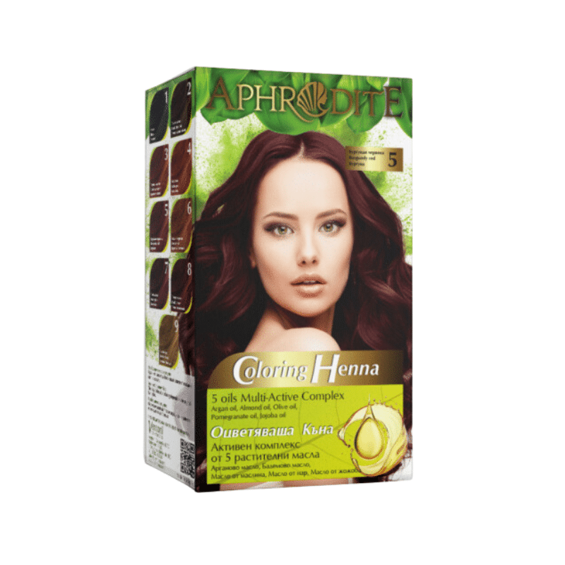 Къна Afrodita оцветяваща къна е продукт от природата с бадемово масло и билки. Съдържа натурална индийска къна и ситно смлени билки-коприва, лайка, орех, смрадлика, риган, репей и оцветители. Подхранва и оцветява косата Ви в желания цвят, съчетана с бадемово масло и билков екстракт.