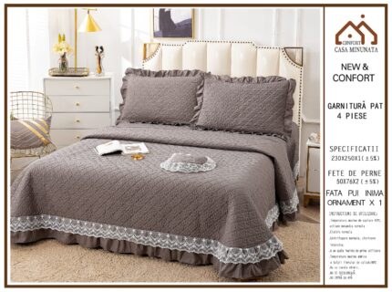 Кувертюра + подарък 3 калъфки за възглавници, 230х250 см, тъмно сиво, Casa Minunata