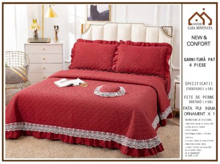 Кувертюра + подарък 3 калъфки за възглавници, 230х250 см, червено, Casa Minunata