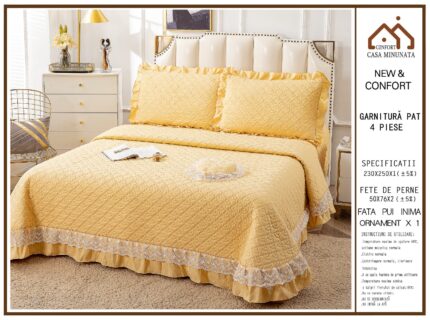 Кувертюра + подарък 3 калъфки за възглавници, 230х250 см, жълто, Casa Minunata