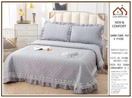 Кувертюра + подарък 3 калъфки за възглавници, 230х250 см, светло сиво, Casa Minunata