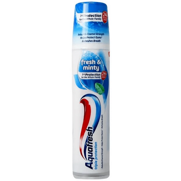 Pasta de dinți Aquafresh protejează dinții și gingiile împotriva dezvoltării plăcii bacteriene. Formula inovatoare a pastei de dinți restabilește albul natural al dinților fără a deteriora smalțul.