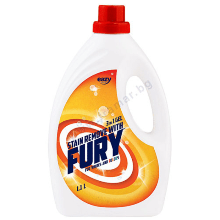 Гел за петна Eazy Fury Stainremover 3 in 1 Gel представлява гелообразен препарат за отстраняване на петна, който ефективно премахва петна от ръжда, червено вино, кафе, кръв, трева, плодове и плодови сокове, шоколад, кетчуп, грим, кал, машинно масло, мазнини и др. Петна и замърсявания върху килими и мокети. Изключително ефикасен върху яки, маншети, покривки, бебешки дрехи. Подходящ за бели и цветни дрехи.