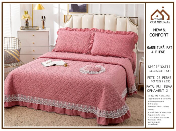 Кувертюра + подарък 3 калъфки за възглавници, 230х250 см, розово , Casa Minunata