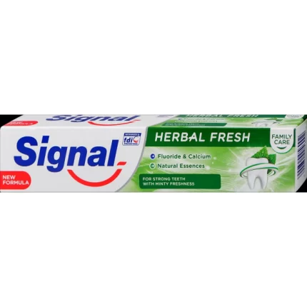 Pasta de dinți Signal protejează dinții și gingiile împotriva dezvoltării plăcii bacteriene. Formula inovatoare a pastei de dinți restabilește albul natural al dinților fără a deteriora smalțul.