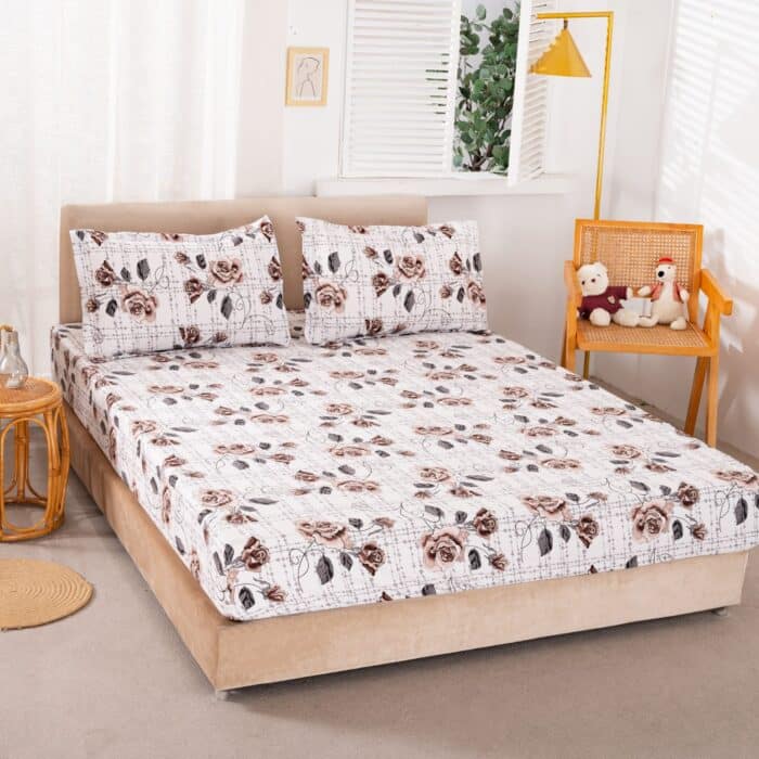 Спален комплект чаршаф с ластик и 2 калъфки за възглавници, 3 части, двойно легло, 180×200 см, Casa Minunata