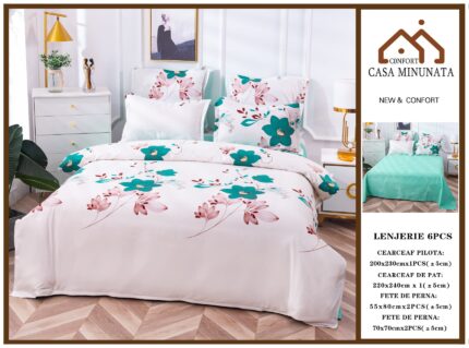 Спален комплект чаршаф с ластик и 2 калъфки за възглавници, 3 части, двойно легло, 180×200 см, Casa Minunata
