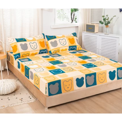 Спален комплект чаршаф с ластик и 2 калъфки за възглавници, 3 части, двойно легло, 180×200 см, Casa Minunata
