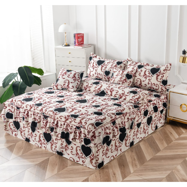 Casa Minunata – set de lenjerie de pat dublu cu volane, 6 piese, 230×250 alb cu inimioare