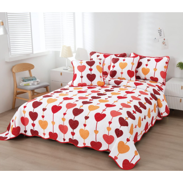 Casa Minunata – cuvertură din 5 piese, 230×250, alb cu inimioare roșii și galbene
