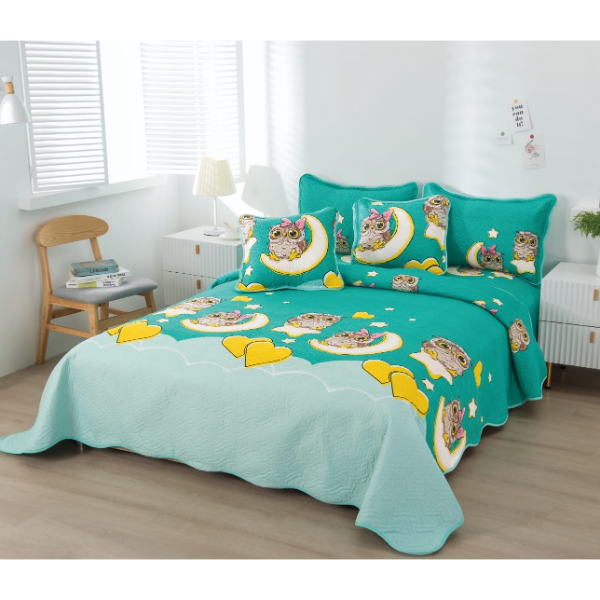 Casa Minunata – cuvertură din 5 piese, 230×250, albastru-verde cu bufnițe