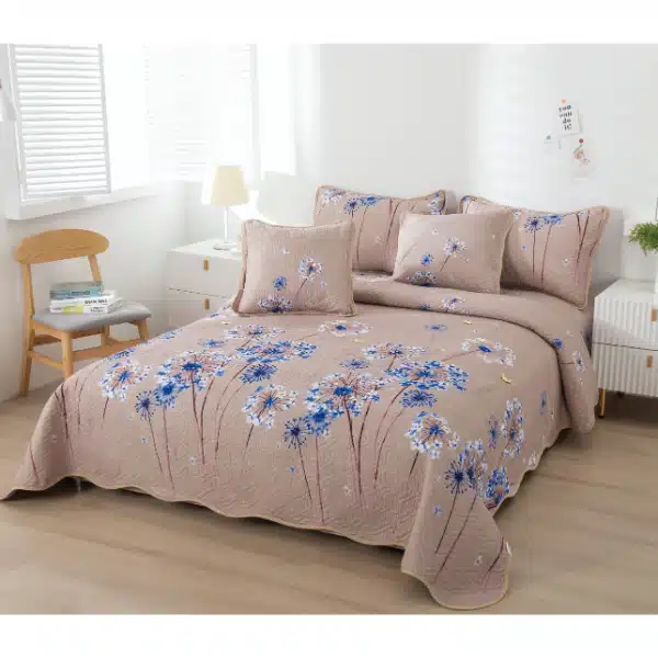 Casa Minunata – cuvertură din 5 piese, 230×250, bej cu flori albastre
