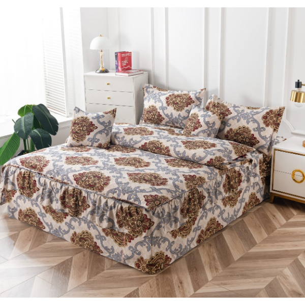 Casa Minunata – set de lenjerie de pat dublu cu volane, 6 piese, 230×250 pe flori